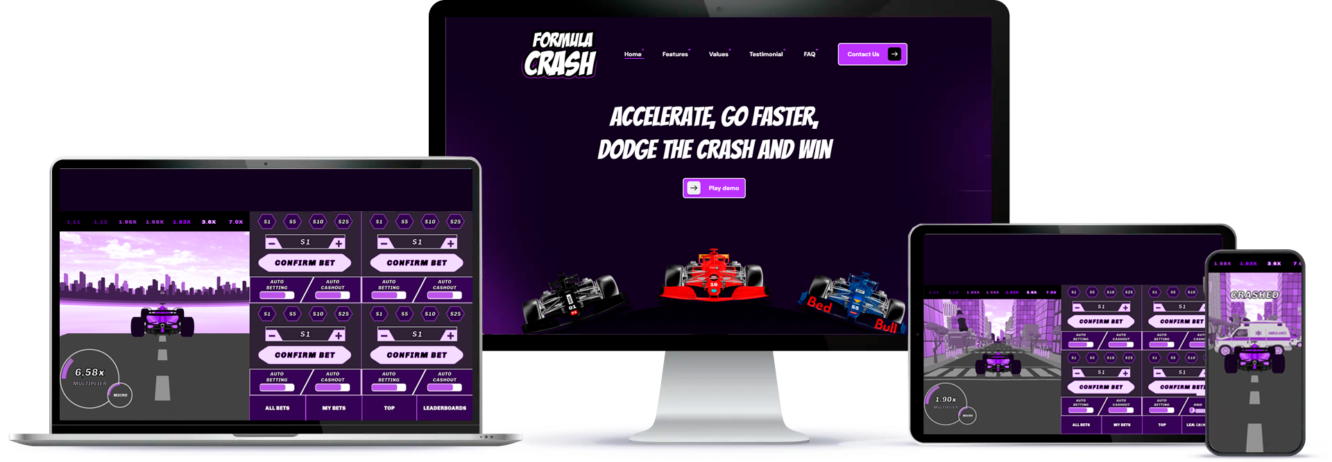 Formula Crash isn’t just a game — it’s a powerful engagement tool designed to boost your brand, captivate users, and drive sustainable growth. With its seamless integration and fully customizable design, Formula Crash enhances user interaction and extends session times across devices.